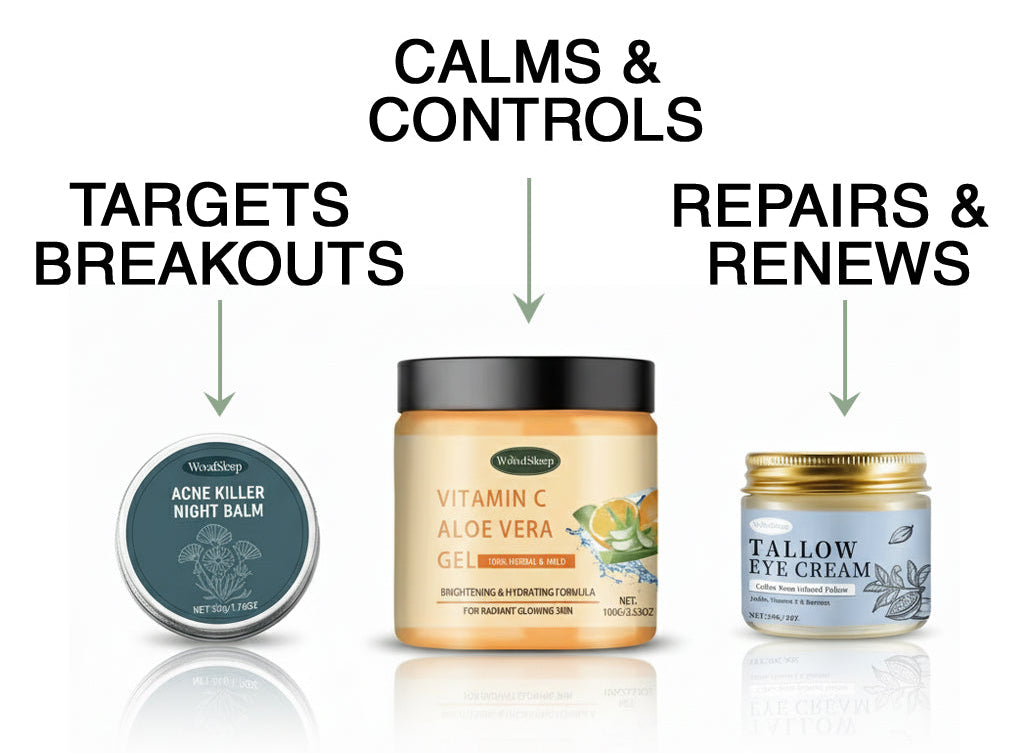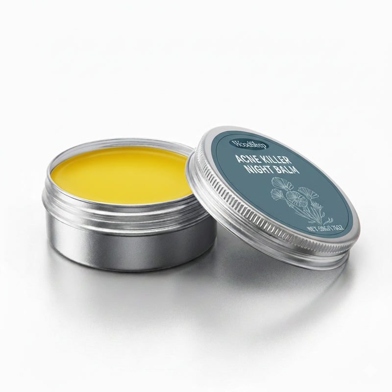 Apply a small amount of Acne Control Balm to clean skin, focusing on active pimples or oily areas.