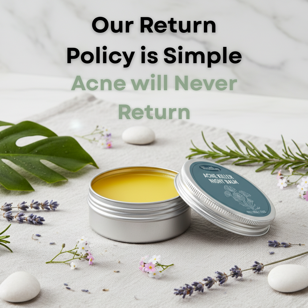 OUR RETURN POLICY IS SIMPLE, ACNE WILL NEVER RETURN